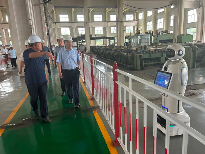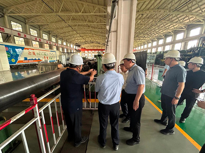 王素文廳長一行參觀了滄海核裝直縫埋弧焊管生產(chǎn)線,詳細(xì)了解了滄海核裝的發(fā)展歷程、產(chǎn)能規(guī)模和生產(chǎn)經(jīng)營情況,實地觀摩了5G智能工廠數(shù)字化車間的全流程調(diào)度運行,對滄海核裝智能化的生產(chǎn)現(xiàn)場和精細(xì)化的管理模式給予了高度評價。